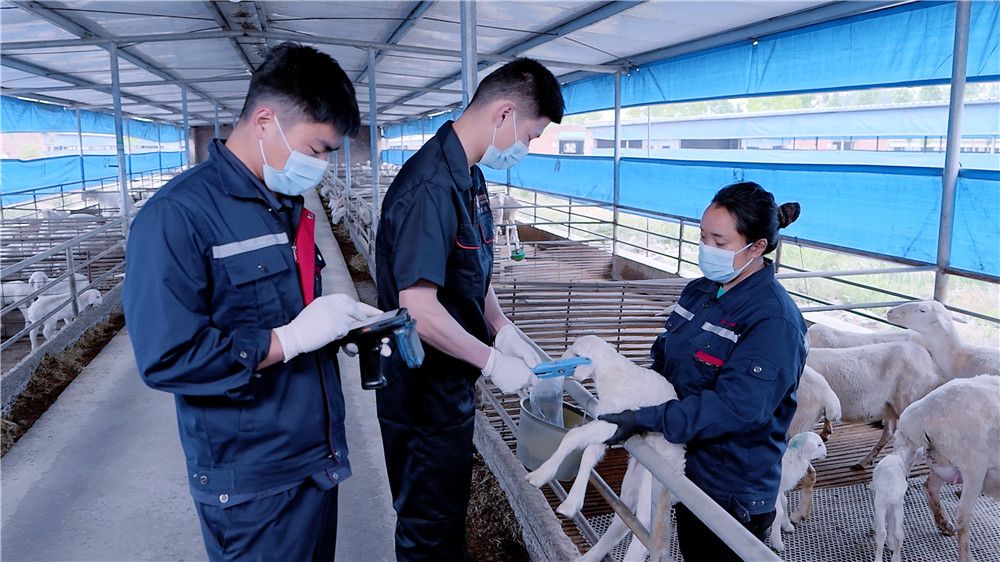 工作人員在給羊崽佩戴電子耳標,進行數(shù)字化管理